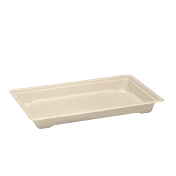 Our plastic-free sushi trays are made from rapidly renewable sugarcane pulp, a by-product of the sugar refining industry, combined with other natural plant fibres. These long, disposable trays are an eco-friendly alternative to plastic sushi trays and contain no added PFAS, making them safe and sustainable for food use. Perfect for sushi, rolls, and assorted Japanese-style meals.