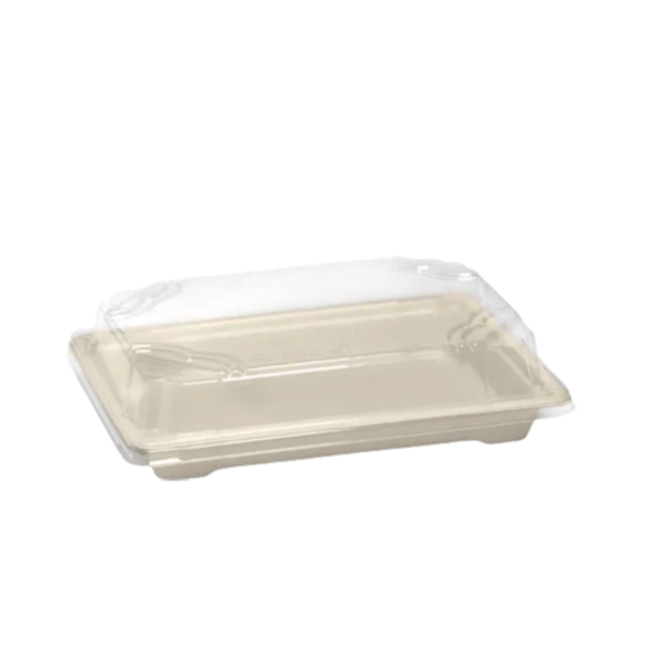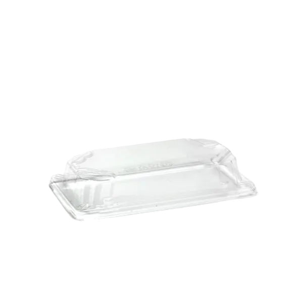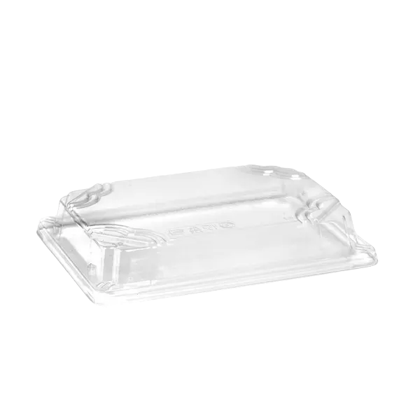 Our sushi tray lids are an eco-friendly alternative to plastic lids. Made from PLA bioplastic derived from renewable plant resources, they are industrially compostable and designed to fit securely with our sugarcane sushi trays. Note: cold use only.